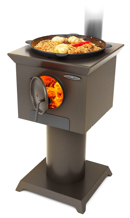 В модификации «Куркума» в комплект поставки входят дымоход и большой варочный настил с чугунными кружками. Выпускается из конструкционной стали в цветовом исполнении «черная бронза».